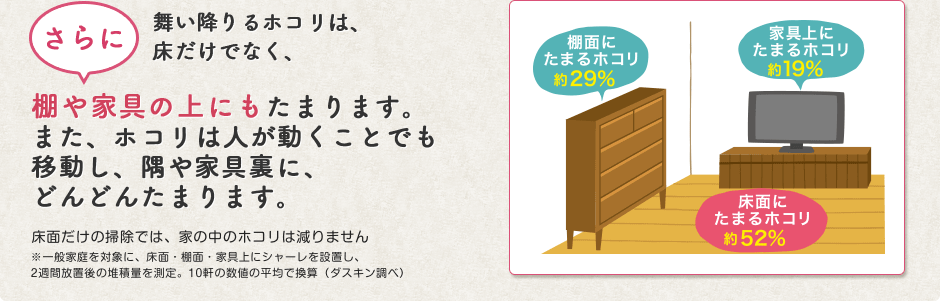モップについたダスキン独自の吸着剤がホコリを包みしっかり吸着して離しません。だからホコリを舞い上げることなくおそうじができるのです